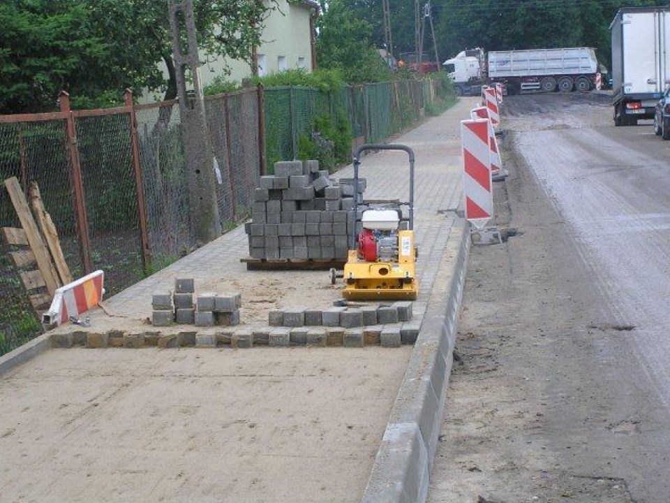 - Zakończono wykonywanie krawężnika betonowego, chodników z kostki betonowej oraz wysepek rozdzielających w m. Zamęcin