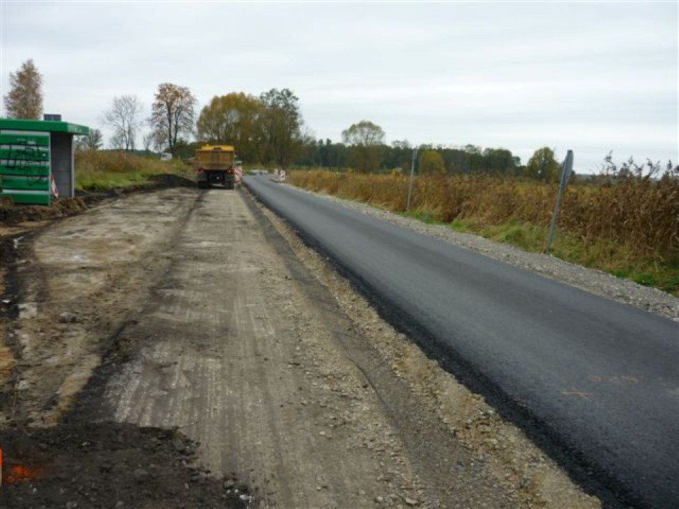 - na odcinku od km 90+960 do km 91+060 (strona prawa) w miejscowości Lubiana wykonano poszerzenie drogi tj. stabilizację oraz konstrukcję z kruszywa łamanego stabilizowanego mechanicznie,