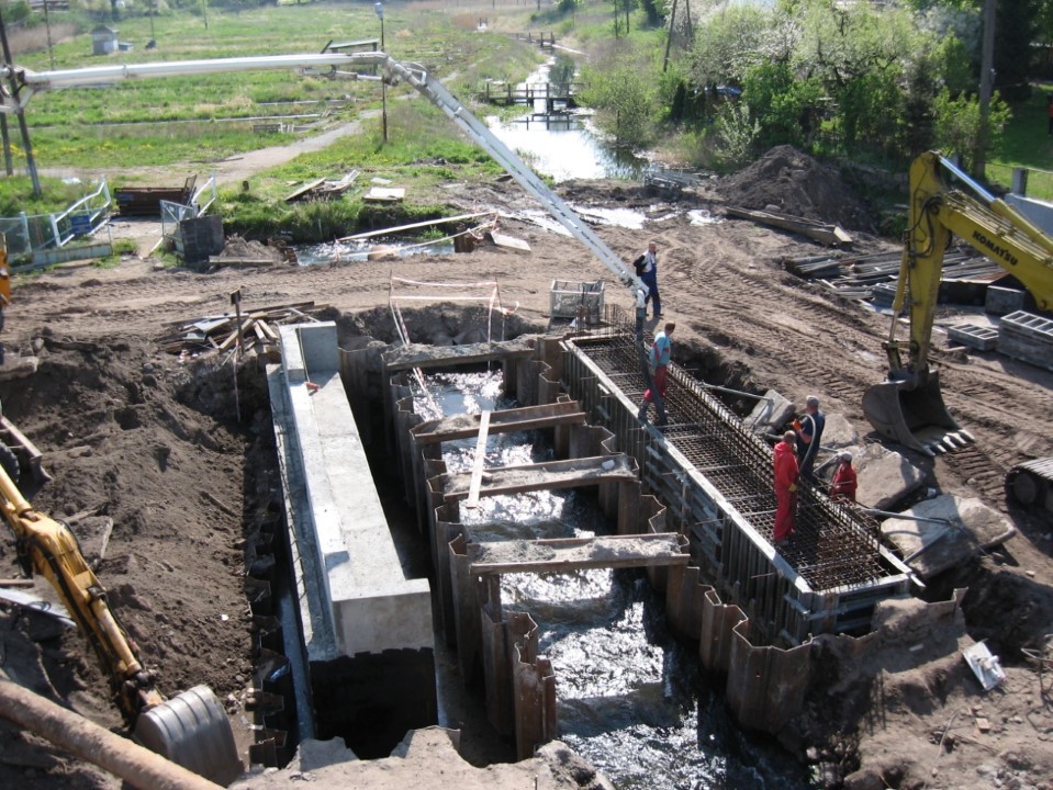W kwietniu na obiekcie M-5 wykonano płytę denną i część muru oporowego. Na obiekcie M-6 zakończono prace przy wbijaniu pali, wykonano fundamenty i korpusy przyczółków.