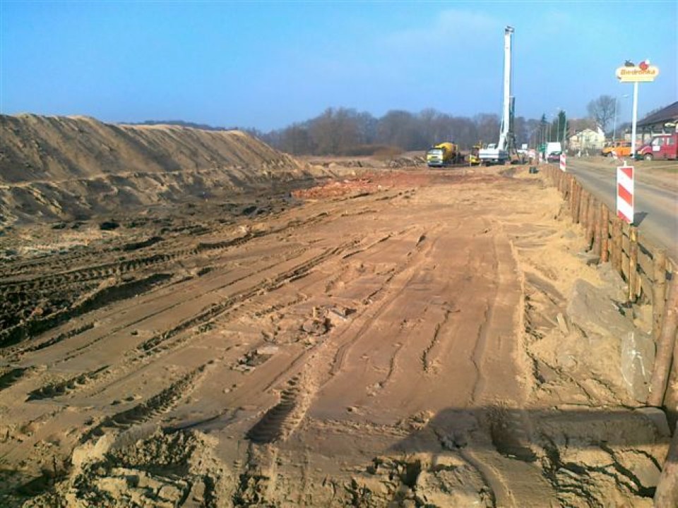 - nasypy z piasku (na odcinku do nowo projektowanego mostu);