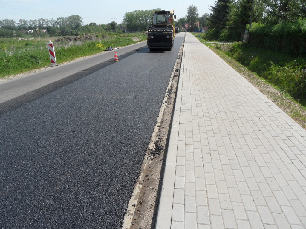 W miesiącu czerwcu trwają prace brukarskie związane z układaniem krawężnika i kostki brukowej pod chodniki. W związku z zakończeniem osiadania nasypu przeciążającego w m. Krupy, Wykonawca przystąpił do jego rozbiórki. Trwają roboty związane z poszerzeniem korpusu pod jezdnię i chodniki. Wykonywane są roboty ziemne- wykopy i nasypy. Zakończono remont przepustu w km 23+885, nadal trwa remont przepustu w km 22+420 w Sławnie.