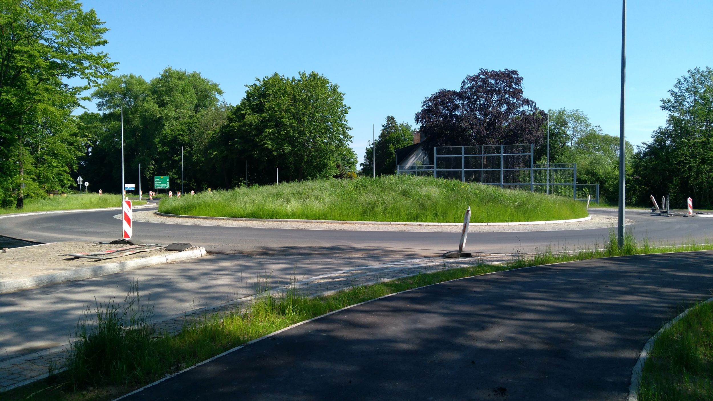 • wykonano podbudowę z gruntu stabilizowanego cementem oraz z kruszywa łamanego – rondo na DW102;