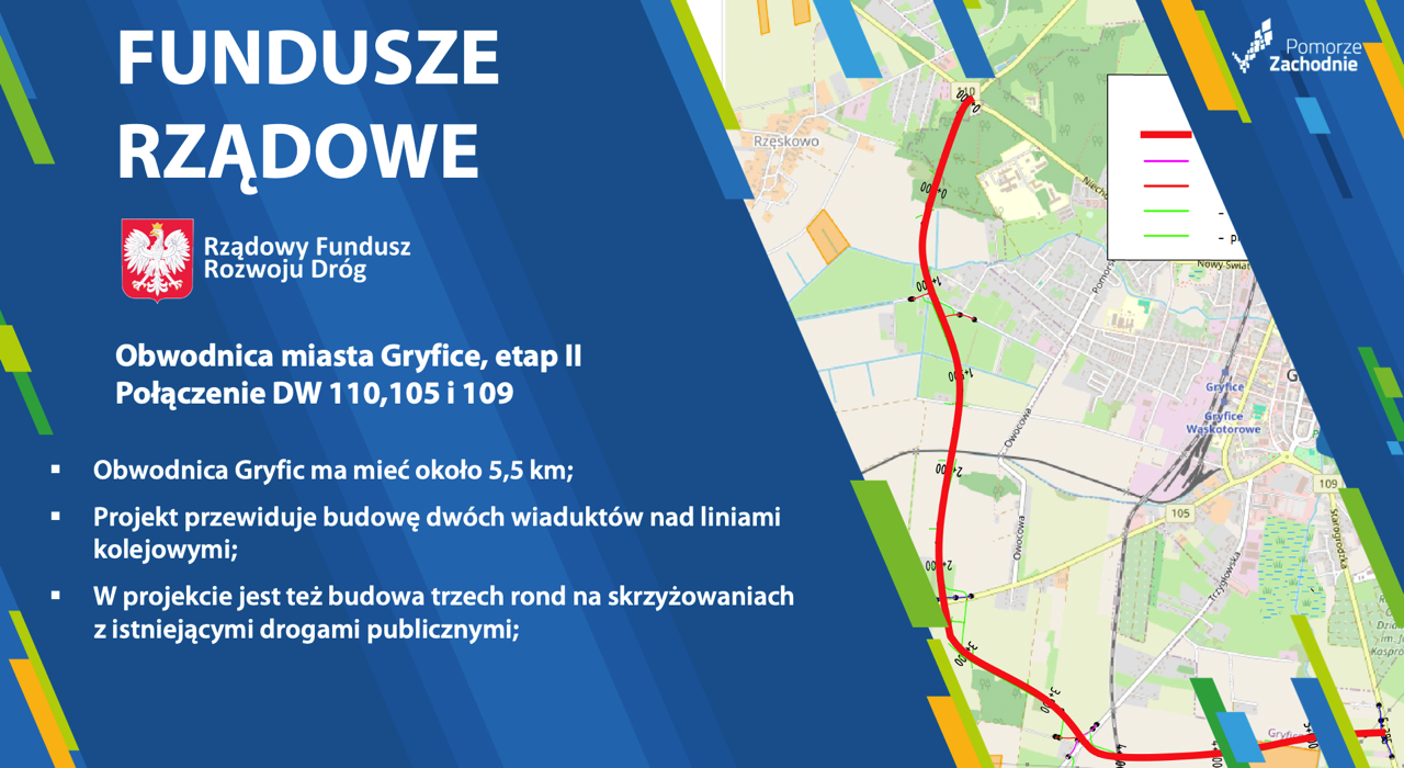 W Gryficach powstanie druga część obwodnicy miasta, która połączy drogi wojewódzkie nr 110 i 105 z drogą wojewódzką nr 109. Wojewoda Zachodniopomorski właśnie wydał decyzję o Zezwoleniu na Realizację Inwestycji Drogowej (ZRiD). Po powstaniu nowego odcinka ruch tranzytowy zostanie w całości przeniesiony poza miasto.